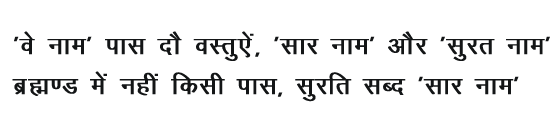 As earlier been mentioned that Satguru 'Vai Naam’ Paramhans Ji is the only ‘Pooran Sant’ of the present time who is spreading the message of ‘Satt Bhakti’ in the masses through 'His’ sermons full of 'Satt Surti’, 'His’ writings such as 'Dohe’ (more than 8000), 'Kavya’ (more than 100), Bhajans (more than 600), Granths such as ‘Amar Sagar’, 'Annand Sagar’, 'Paramhans Surti Mahima’, 'Geeta’s)’ (both- 'Alp Mukti se Moksh ki aur’ & ''Vai Naam” Surti Dhara’ etc. along with so many 'Dhrishtant’ (experiences/anubhav). Everything which has been written/pendowned through the 'Surti’ of Satguru 'Vai Naam’ Paramhans Ji has written in easy techniques, language and emotions so that every one can understand it easily. Even then 'Satguru Paramhans Ji’ is so kind in himself that he accepts gracefully all the lapses, if any, and gives all credit of these ‘Granths’ to all the 'Hansas’ readers without any hesitation.